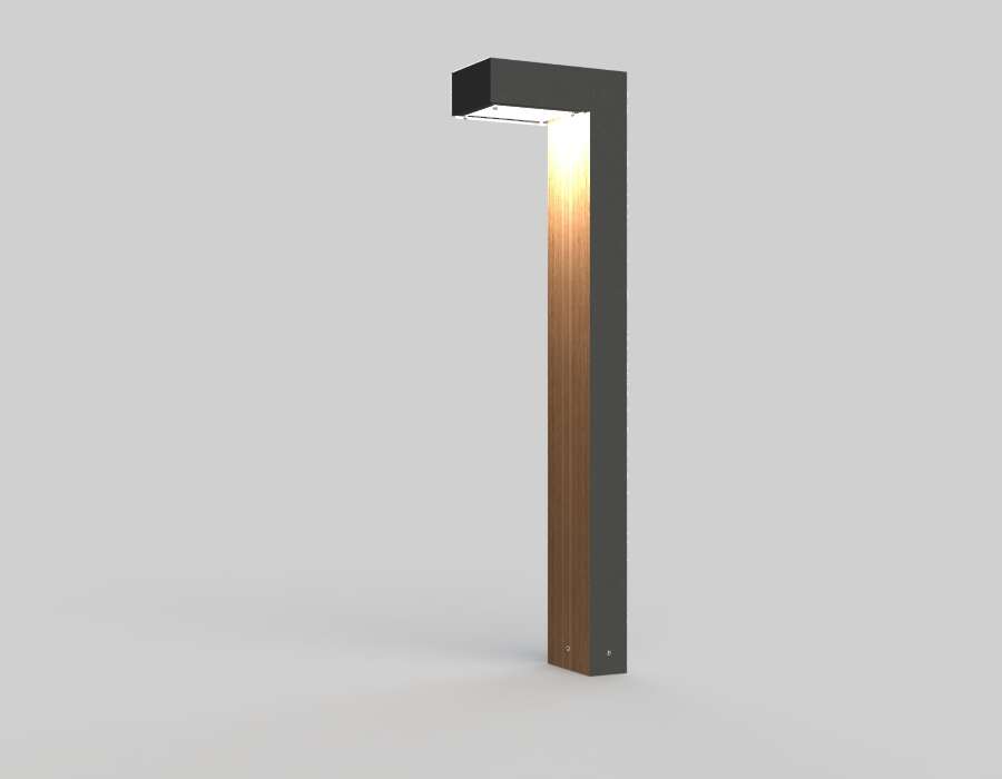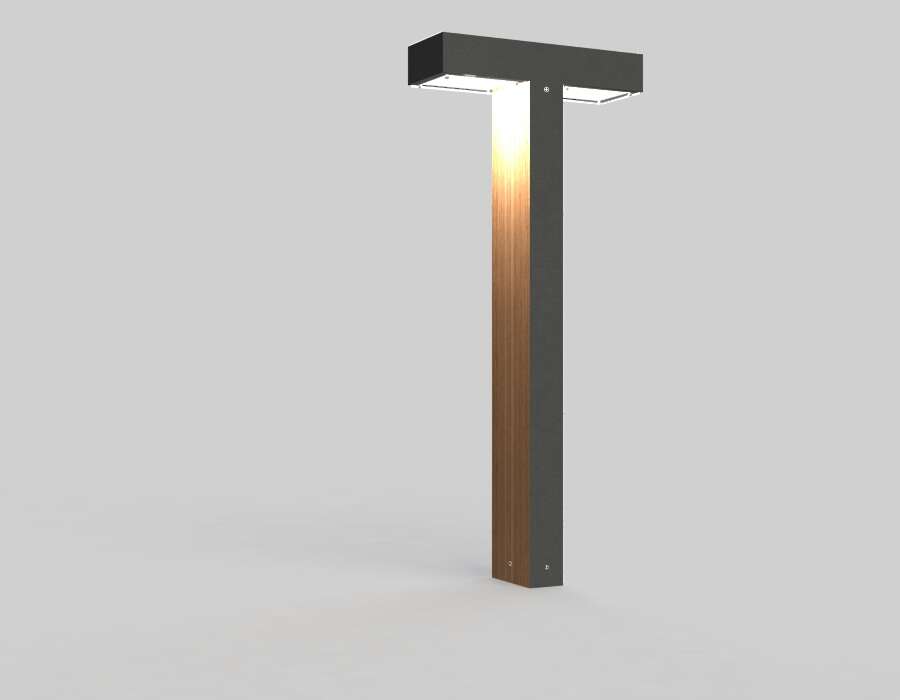 A slim bollard carefully crafted from 6061-T6 aluminum extrusion, features an inverted L-shaped profile with choice of twin-head assembly to give your design an attractive T-shaped fixture. The top section houses the LED covered by clear lens emitting subtle direct downward illumination that gives a warm and inviting ambiance. Contact factory to explore different wood and design finishing options.