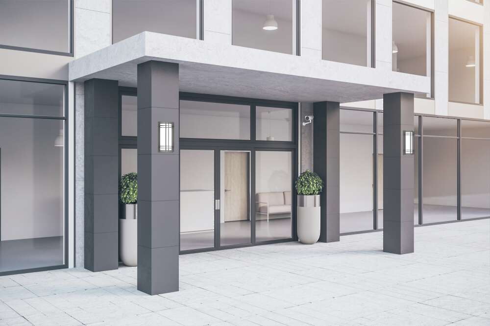 Created to illuminate exterior spaces such as building entrance ways and surrounding walls.