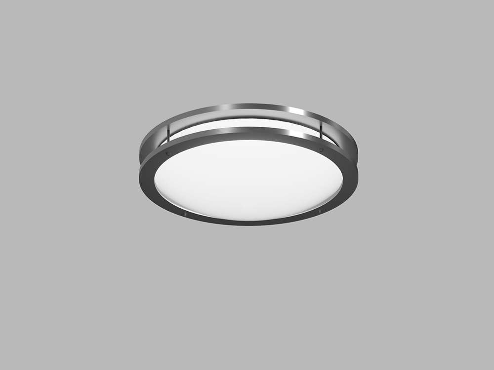 Luminaire housing consists of an opal polycarbonate lens surrounded by a cold rolled steel frame.
