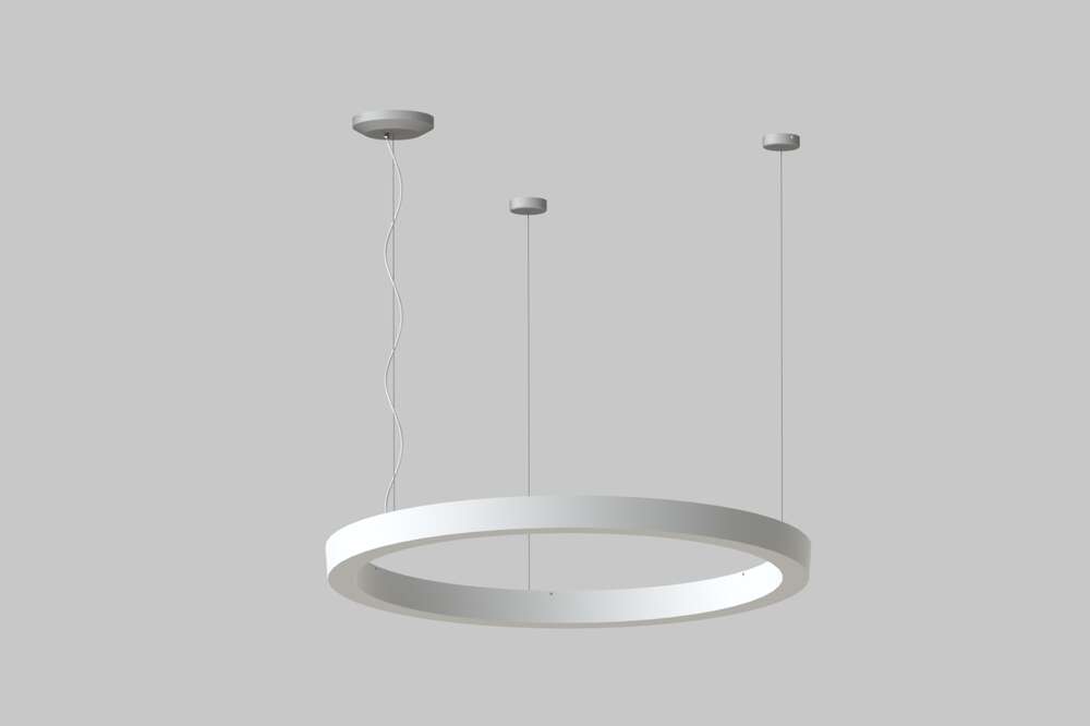 Luminaire housing consists of a hollow circular aluminum frame that holds a one-piece opal acrylic lens from the bottom.