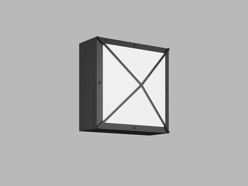 Luminaire housing consists of a cast aluminum frame and a pyramid polycarbonate lens. A diagonal aluminum crossbar is overlaid on top of the lens. Suitable for wet location applications.