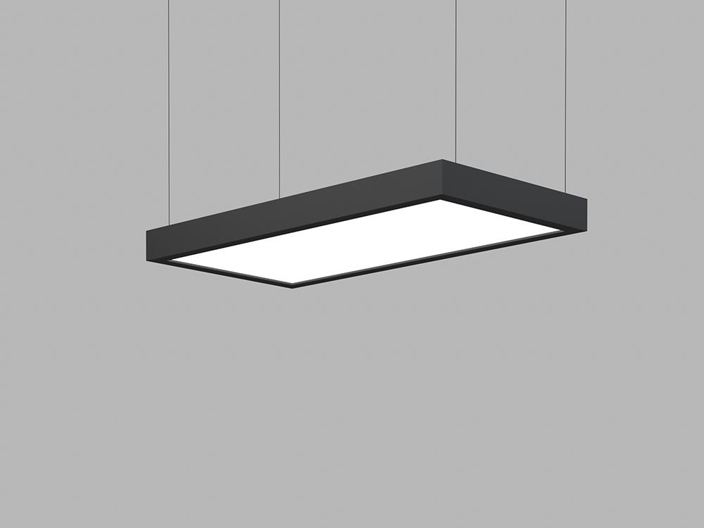 Luminaire housing consists of a rectangular extruded aluminum frame with built in heat sinks. Standard lens is satinice which secures to the bottom of the housing.