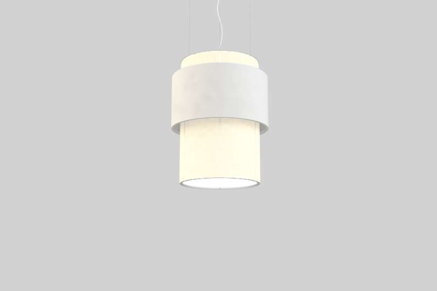 This high quality luminaire consists of a circular aluminum frame that has a longer inner shade enveloped by a shorter outer ring band with choice of fabric or vinyl materials. The outer and inner shades have bottom trim rings offered in standard white finish. Fabric or Vinyl Finishes are offered in standard mono-tone color. Two-tone and other color finishes are also available in customizable options. Refer to fabric & color finishes via the following link: https://soleracorp.com/ral.html. Contact Solera for other options.