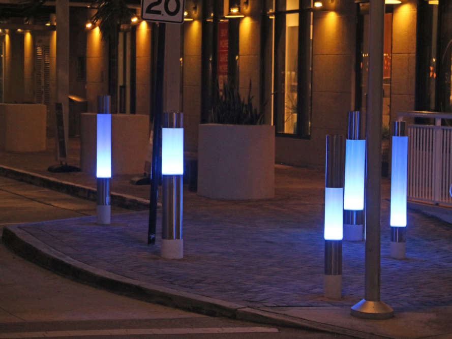 Solera provided WND-1 light column and bollards for a high traffic pedestrian area in Dadeland, FL. The lens profiles for all the luminaires on this project were unique, in other words, different heights. The luminaires were DMX controlled to make them color changing.