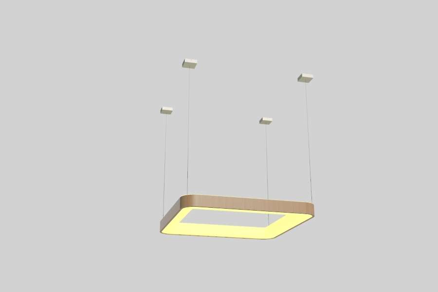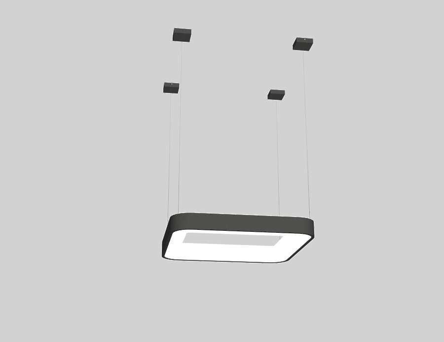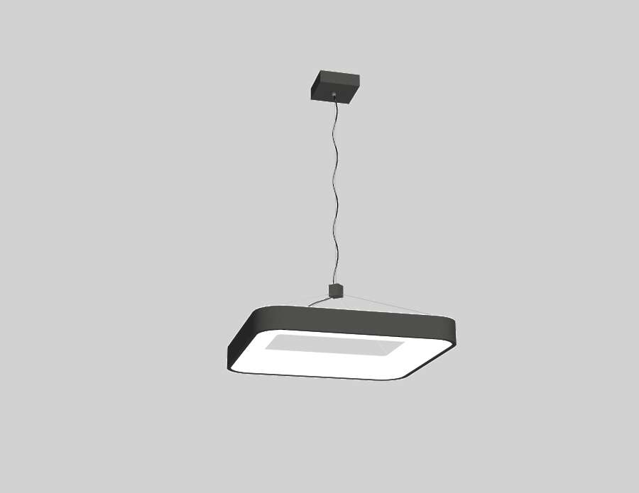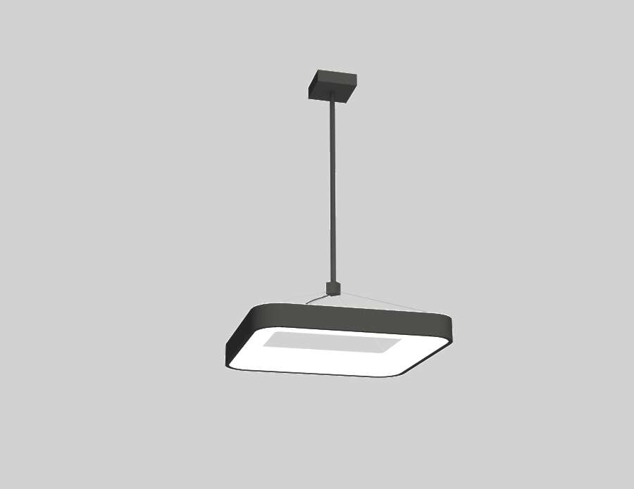 Luminaire housing consists of a square frame with smooth corners. Made from aluminum extrusion. The opal acrylic lens sits at the inner part of the luminaire emitting light directly downwards.