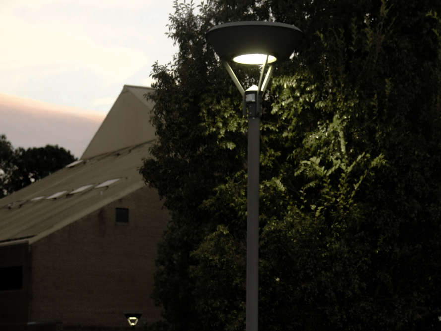 Solera provided AXD post tops for the whole campus at Fayetteville State University. Typically, used for dark sky initiatives, these luminaires provide ample illumination for pedestrian scale areas. Optical schematics can be tweaked to prevent light trespass.