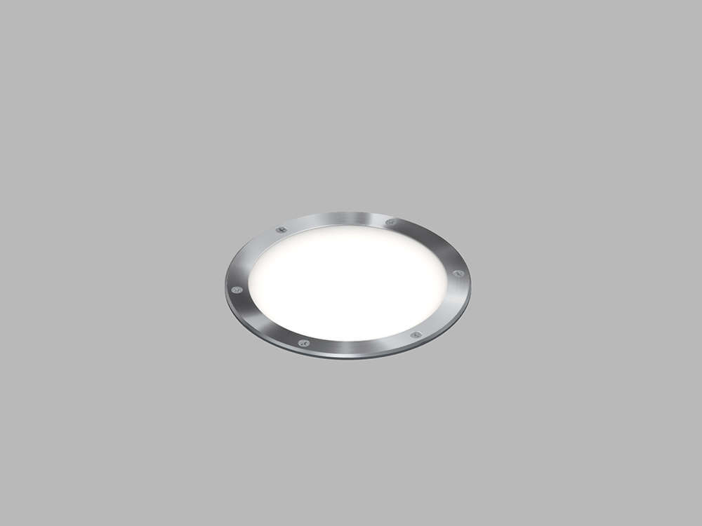 Luminaire housing consists of a cylindrical aluminum frame, a glass lens, and a stainless-steel trim. Select between different beam spreads to meet lighting requirements.