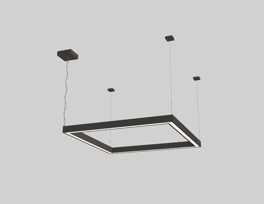 Luminaire housing consists of a square frame made of aluminum extrusion material with opal acrylic lens at the bottom.
