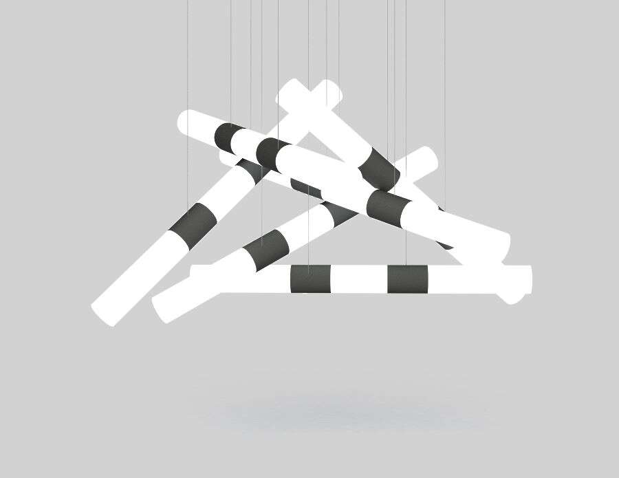 Luminaire consists of cylindrical opal acrylic lens with metal bands in between providing illumination on all sides.