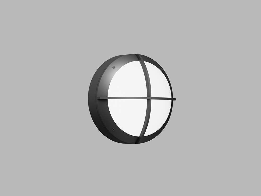 Luminaire housing consists of a cast aluminum frame and a convex opal polycarbonate lens. The MRT variation has a cross bar design overlaid on top of the lens. Suitable for wet location applications.