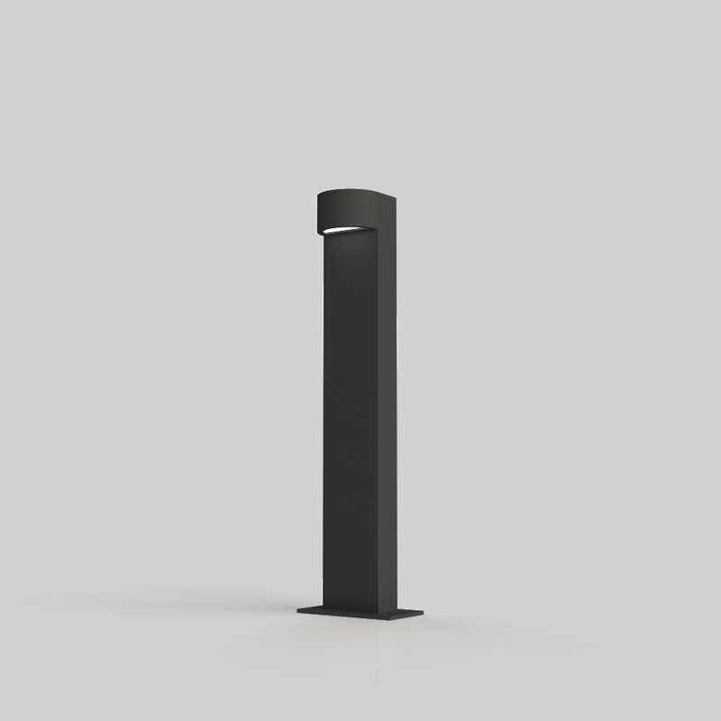 Only 28" tall, this is a slim bollard with flat top and uniquely curved head. The top section houses the LED giving subtle downward illumination.