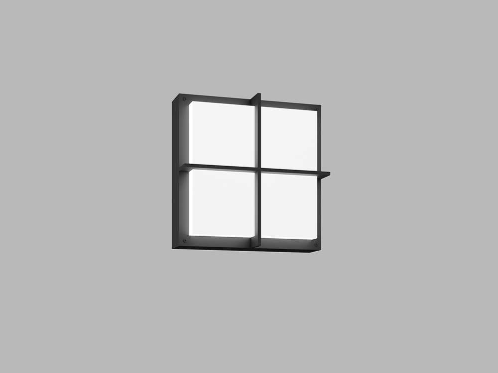 Luminaire housing consists of a cast aluminum frame and a square polycarbonate lens. An aluminum crossbar is overlaid on top of the lens. Suitable for wet location applications.