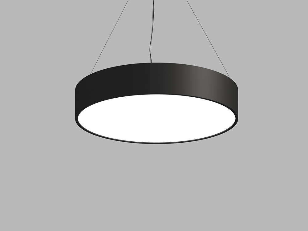 Encased by a spun aluminum frame and an opal acrylic lens. Direct down light is standard, with the option to specify an indirect up light.