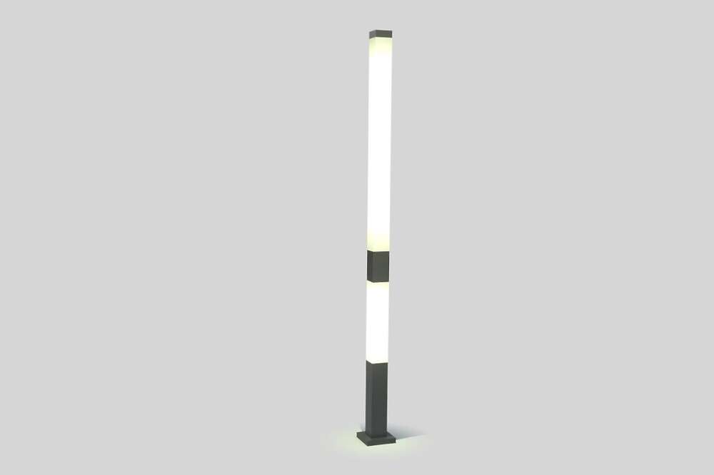 Luminaire housing consists of an extruded aluminum square shaft, square opal acrylic lens, and an aluminum top cap. Over-all height is standard at 20ft.