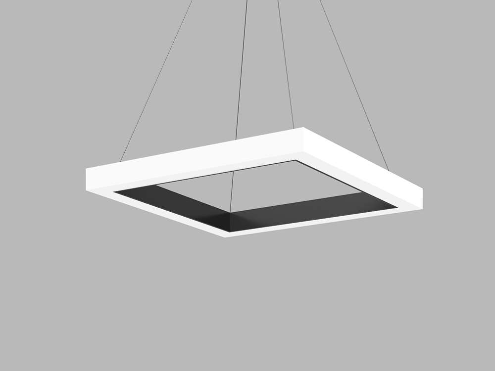 Luminaire housing consists of a hollow square aluminum frame that is encased by an opal acrylic lens on the outside.