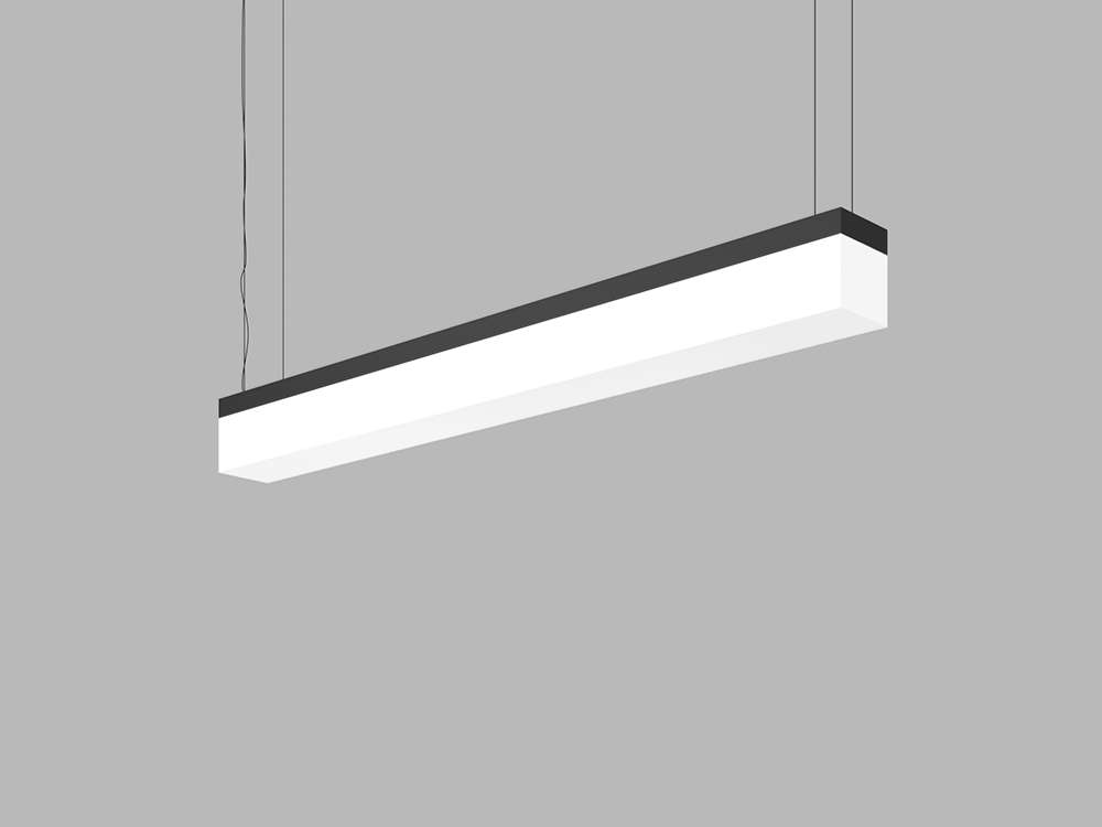 Luminaire housing consists of a rectangular aluminum top plate and a rectangular cuboid lens made of opal acrylic. Encompassing glow light pattern is standard.